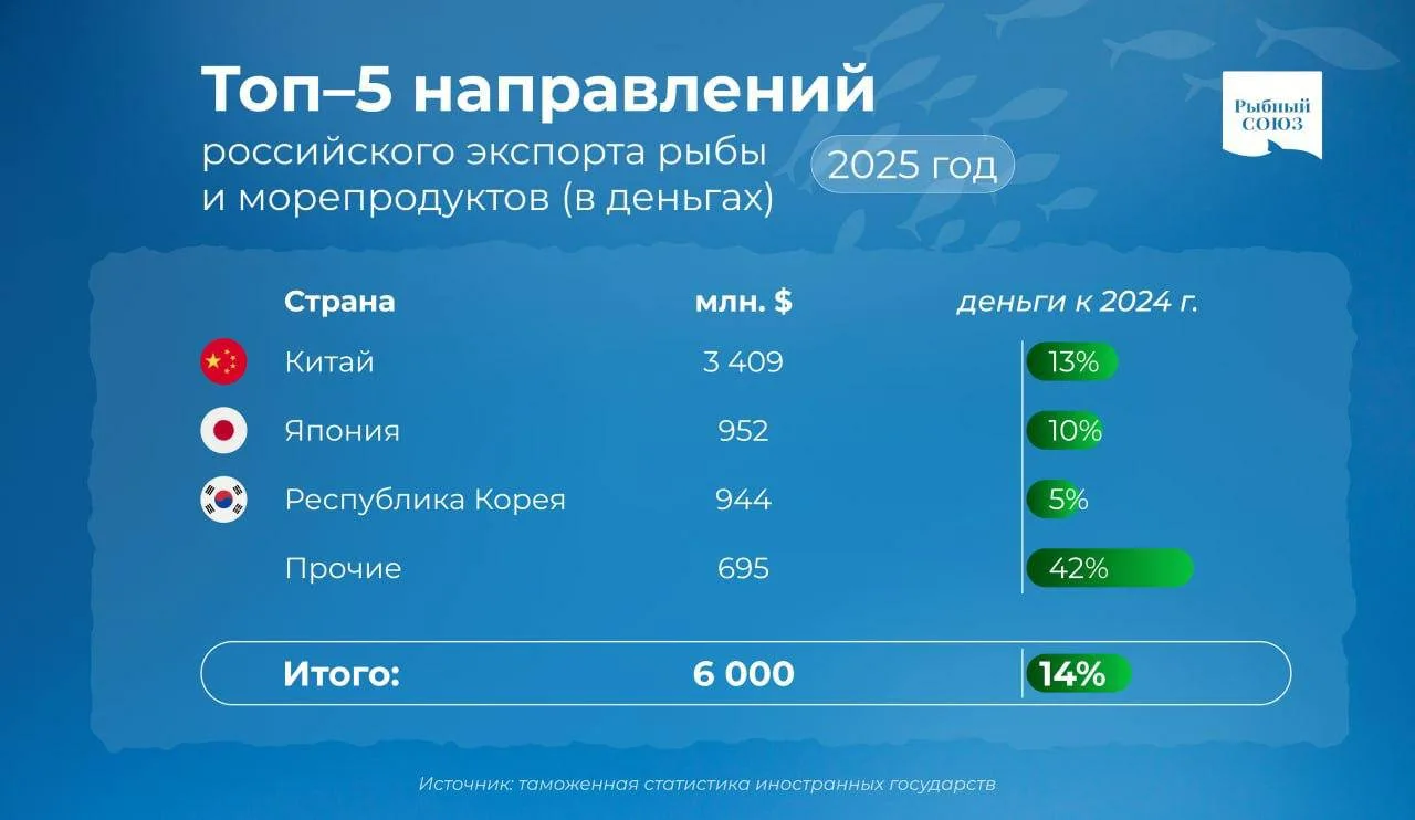 По данным Аналитического центра Рыбного Союза, в 2025 году Россия поставила за рубеж 2,1 млн тонн, оставшись на уровне 2024-го. При этом в деньгах он увеличился на 14%, до $6 млрд. На этом сказалась не только благоприятная ценовая конъюнктура на мировых рынках, но и рост поставок продукции высокой степени переработки (рыбного филе и сурими).