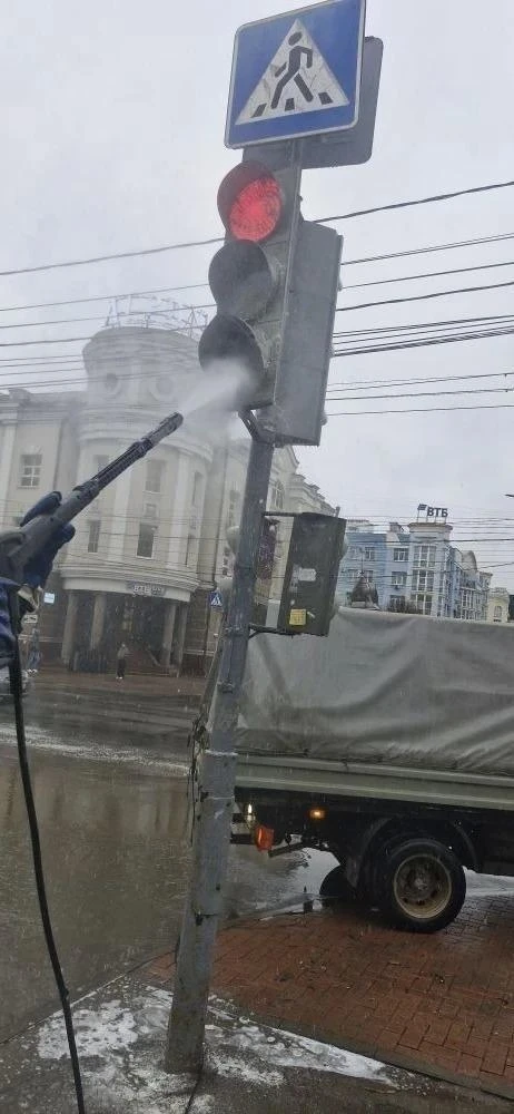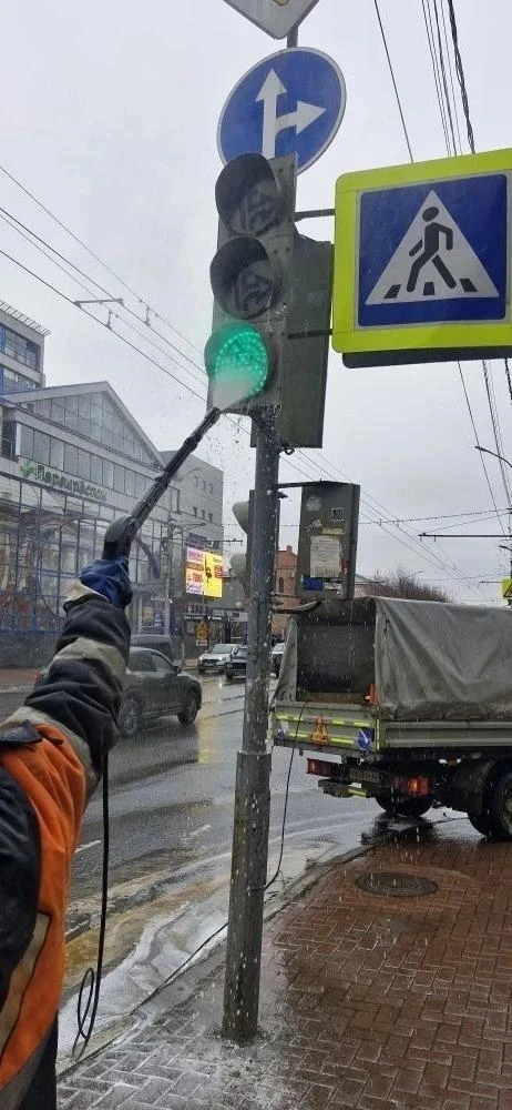 🚦 В Рязани начали промывать светофоры после зимы для повышения безопасности, работы уже провели на Куйбышевском шоссе, улицах Ленина, Зубковой и других.