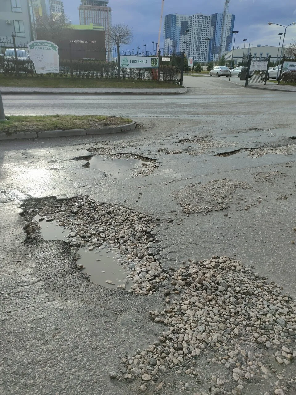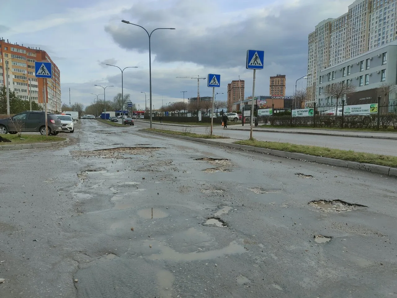 Вот такая красивая дорога "радует" жителей Олимпийского городка каждый день...