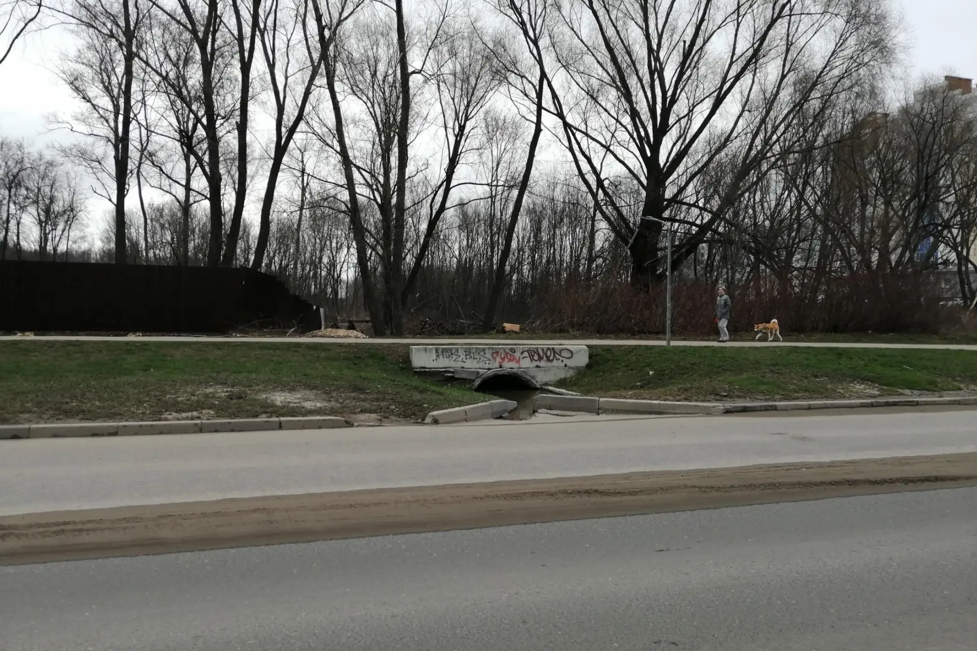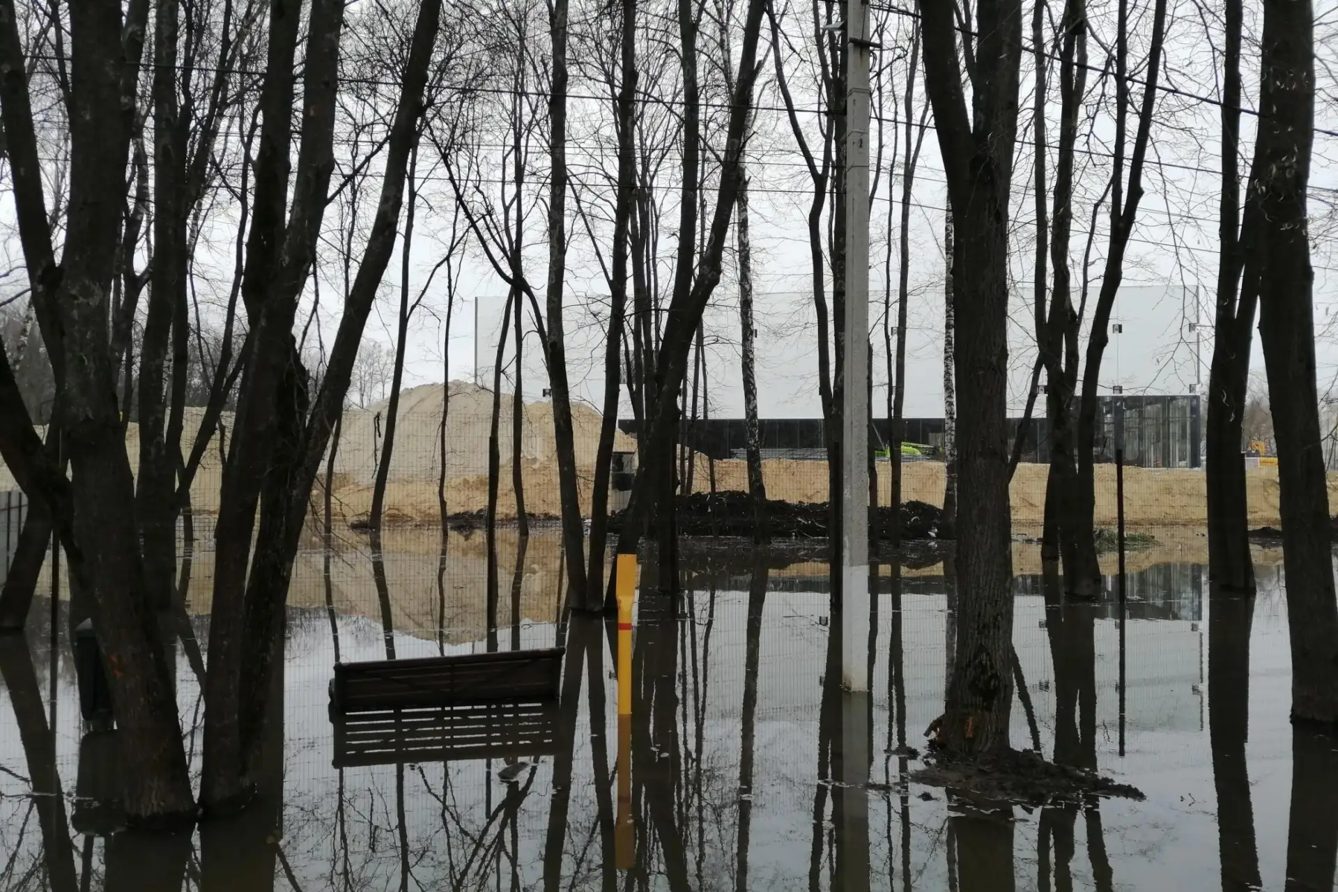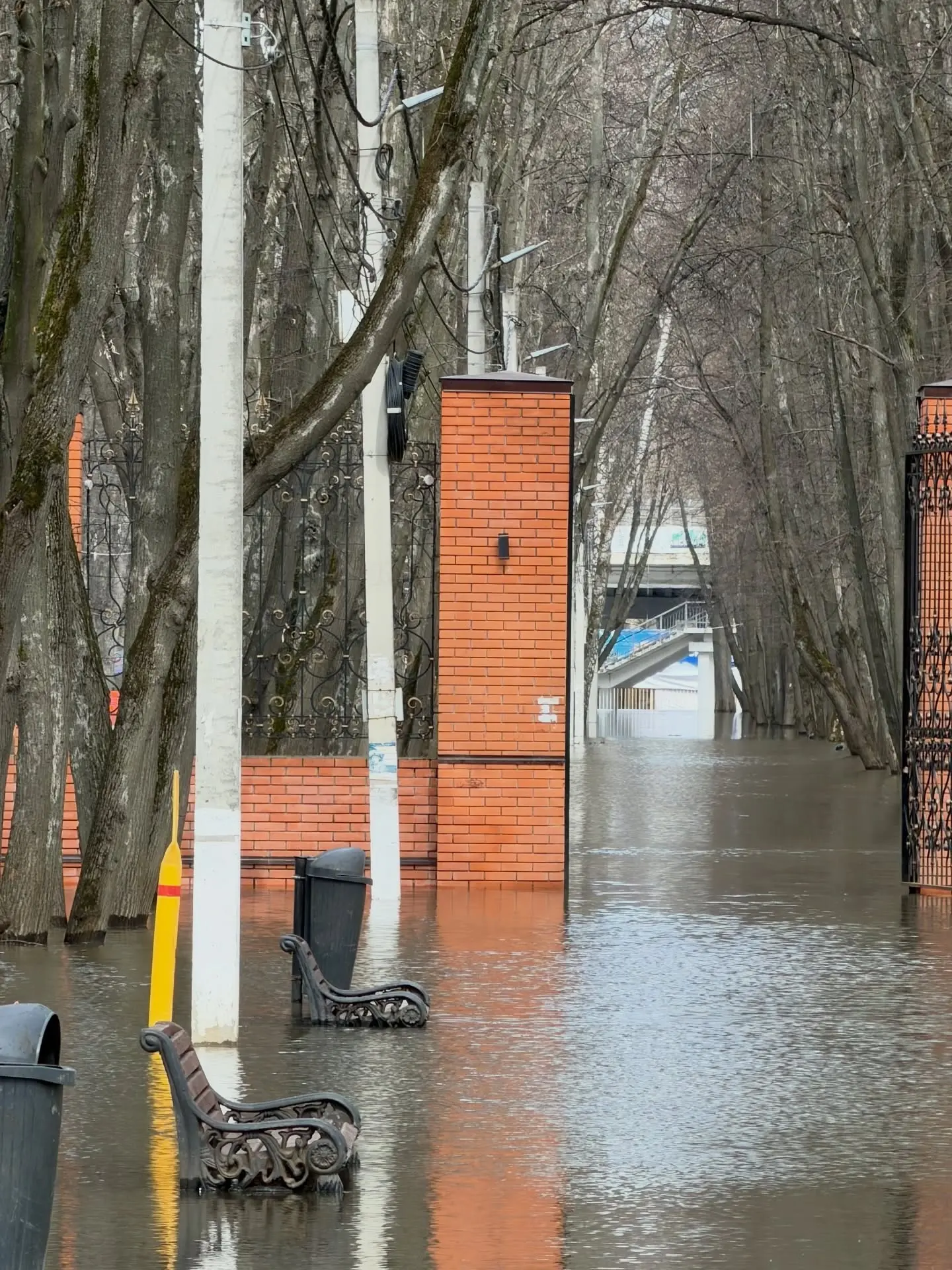 🌊 В Лесопарке река вышла за ворота и заливает парковку, на Окском шоссе вода пошла из трубы, но дорогу пока не затопила.