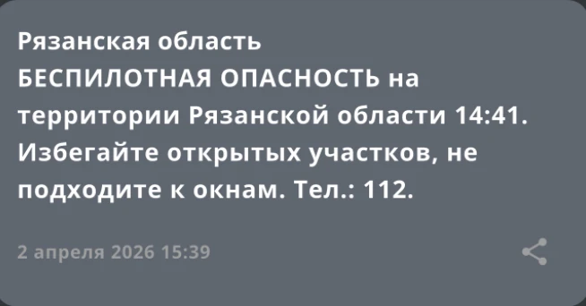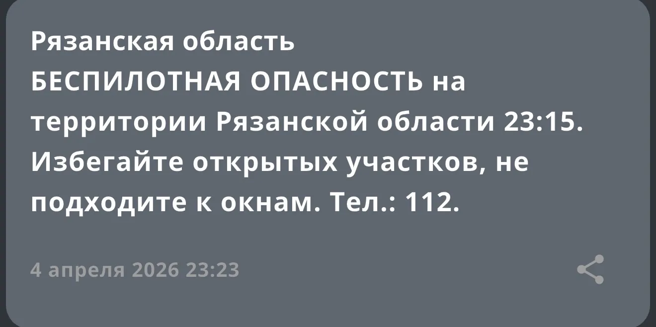 Внимание! Опасность атаки БПЛА на территории Рязани и области, — РСЧС.