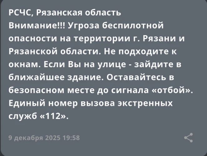 🔴 Внимание! Угроза атаки БПЛА на территории Рязанской области, — РСЧС.