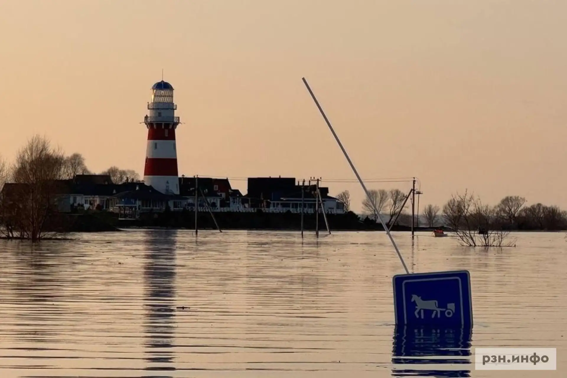 Разлив Оки под Рязанью: кадры сделаны в селе Шумашь, где по воде катались на сапах, а спасатели патрулировали территорию.