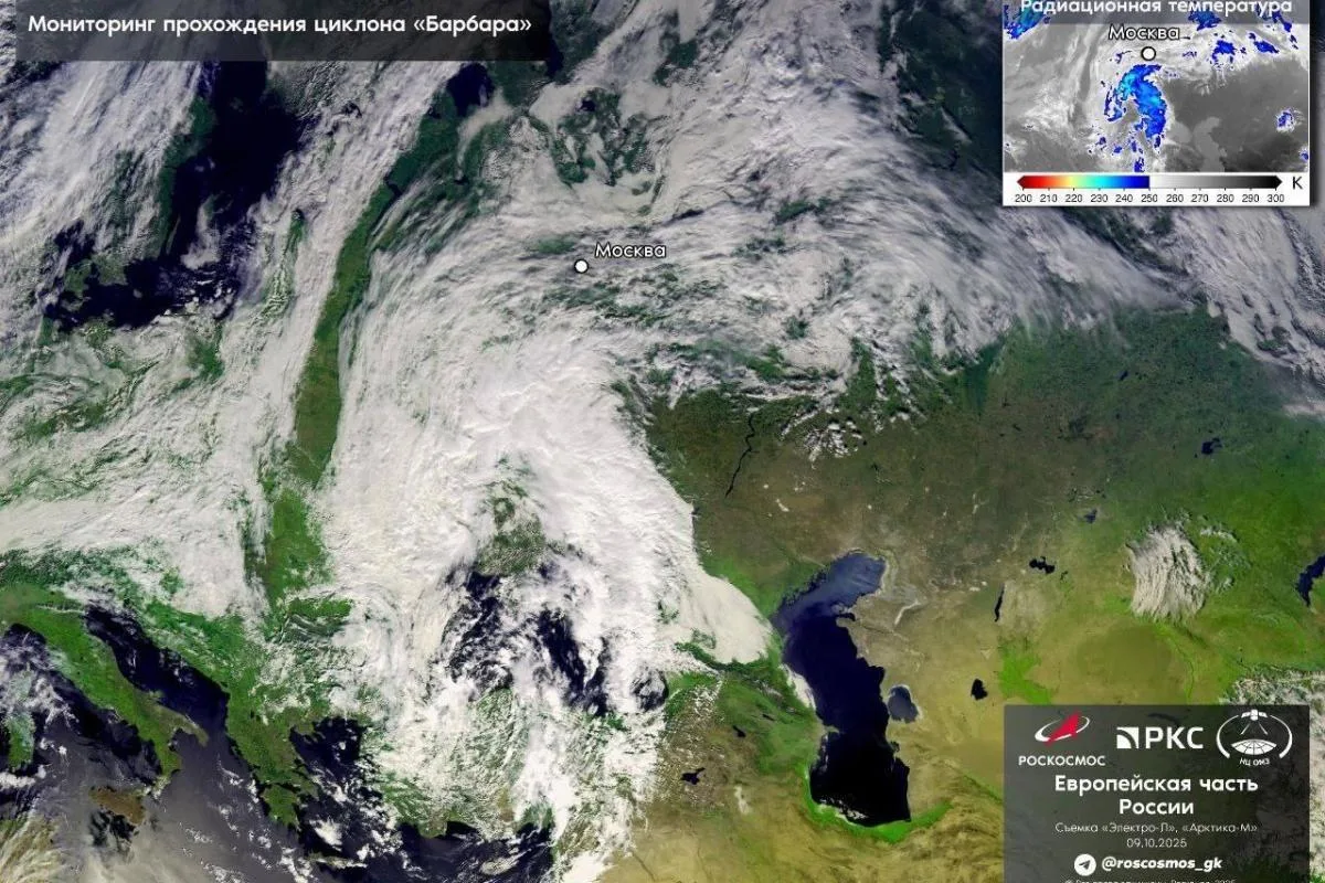«Роскосмос» показал спутниковый снимок циклона, который к выходным принесет в регион дожди и похолодание.