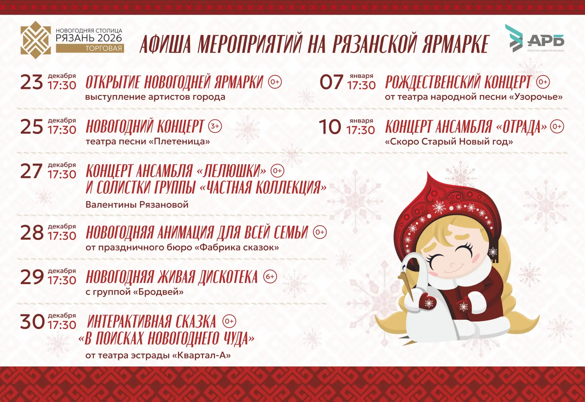 🎄Афиша мероприятий на Рязанской ярмарке на площади Победы (перед МКЦ)🎄