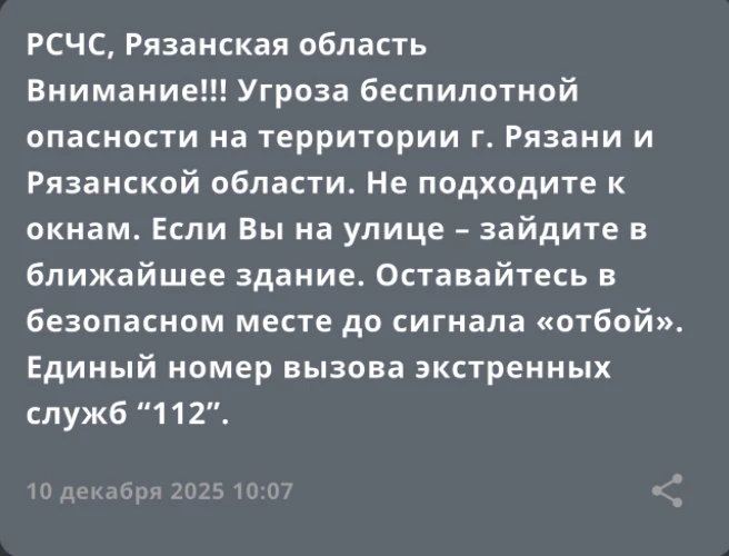 Внимание! Опасность атаки БПЛА на территории Рязани и области, — РСЧС. max.ru/rzncity