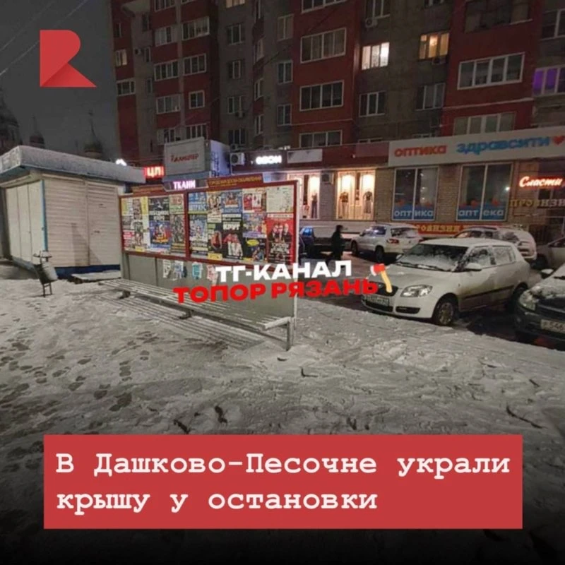 😁 В Дашково-Песочне украли крышу у остановки. Об этом сообщили подписчики тг-канала «Топор | Новости Рязани».