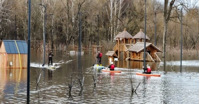 🌳🏄♂️ Рязанцы начали сплавляться по затопленному половодьем Лесопарку