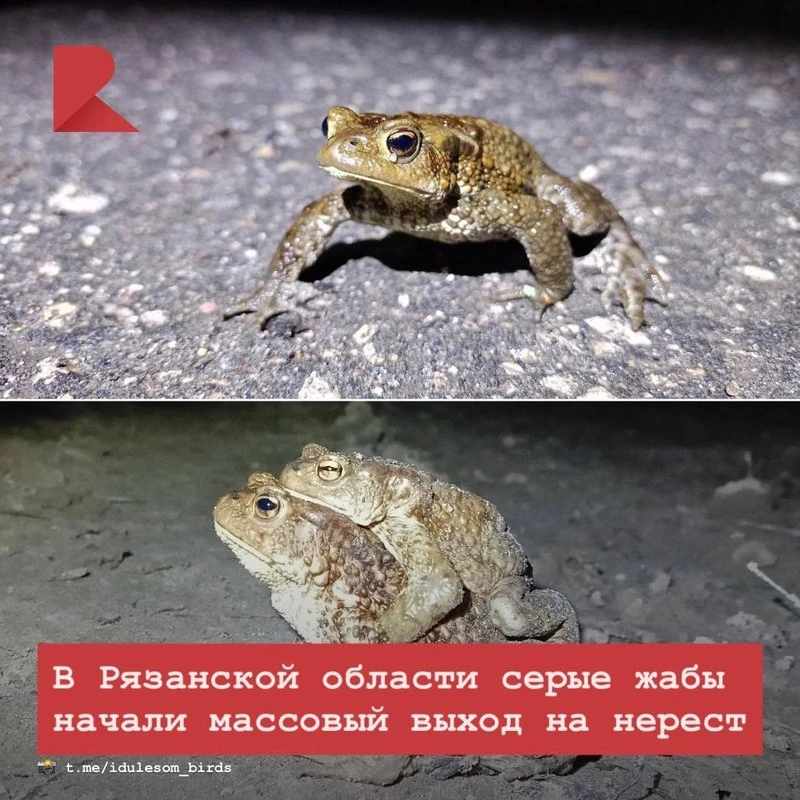 🐸 В Рязанской области наступило время нереста серых жаб. Об этом сообщает тг-канал «Иду лесом, несу дичь».