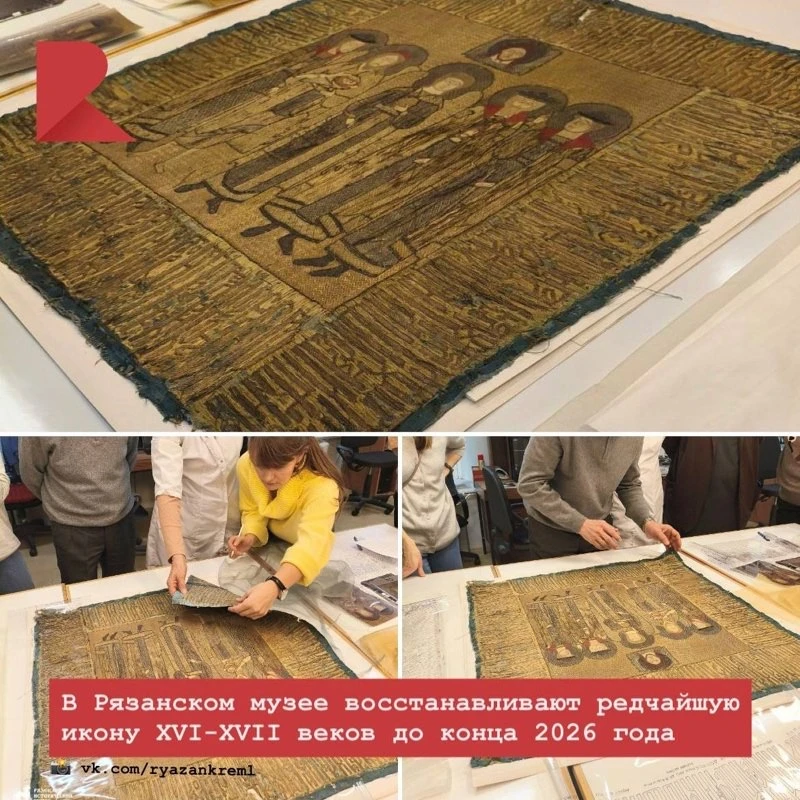 ✅ Рязанский исторический музей приступил к масштабной реставрации уникального образца древнерусского лицевого шитья – иконы «Избранные святые», датируемой XVI-XVII веками. Об этом сообщается в группе музея ВКонтакте.