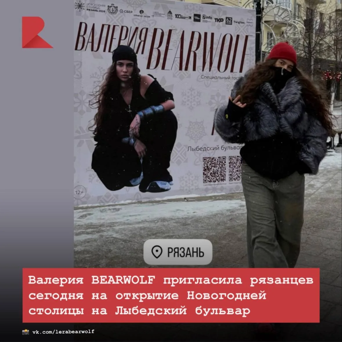 🎄 Валерия BEARWOLF пригласила рязанцев сегодня на открытие Новогодней столицы на Лыбедский бульвар.