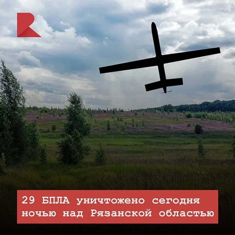🔴 В течение прошедшей ночи дежурными средствами ПВО перехвачены и уничтожены 29 БПЛА над Рязанской областью. Сообщили Минобороны России.