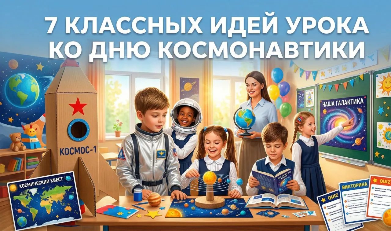 Мы подготовили для вас план для 7 разных уроков ко Дню Космонавтики.