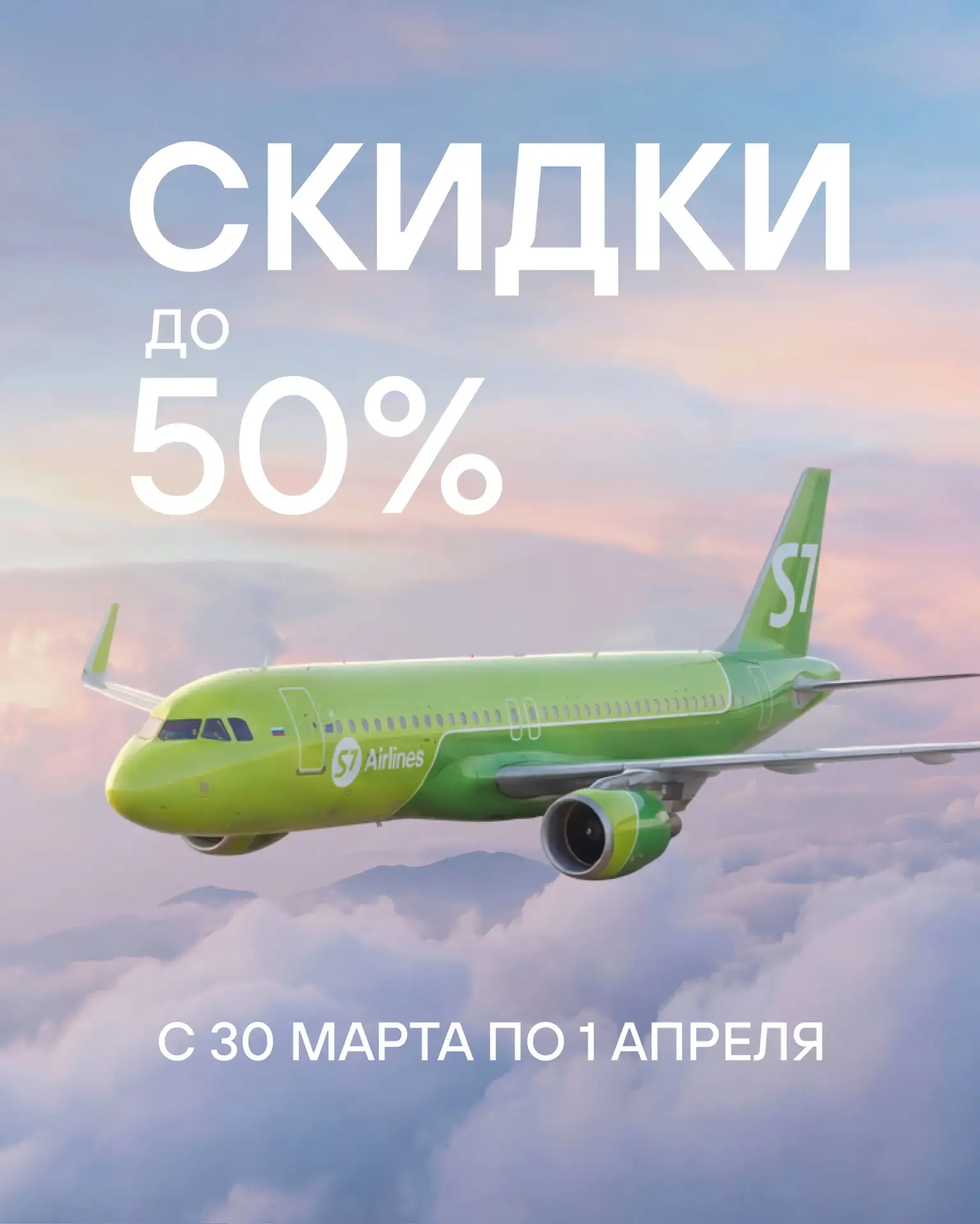 30 марта — день виртуального отпуска. И старт распродажи S7 Airlines со скидками до 50%