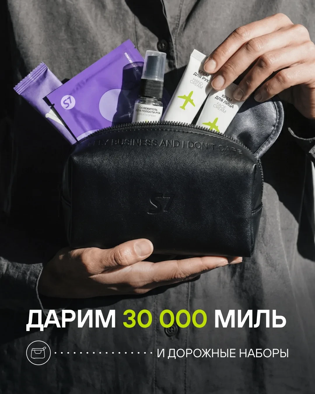 Вас ждут скидки до 99% на билеты, в том числе и в бизнес-класс, а также сертификаты до 100 000 миль S7 Airlines и промокоды до 100 000 баллов Плюса.