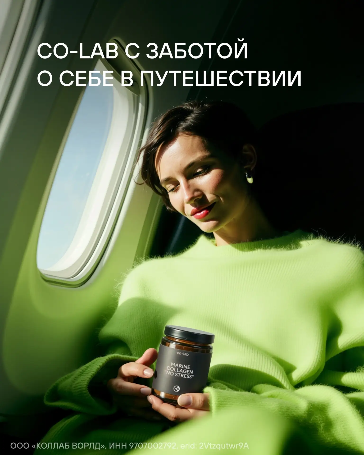 Co-lab No Stress — натуральные коллагеновые комплексы, созданные совместно с S7 Airlines для заботы о себе в путешествии.