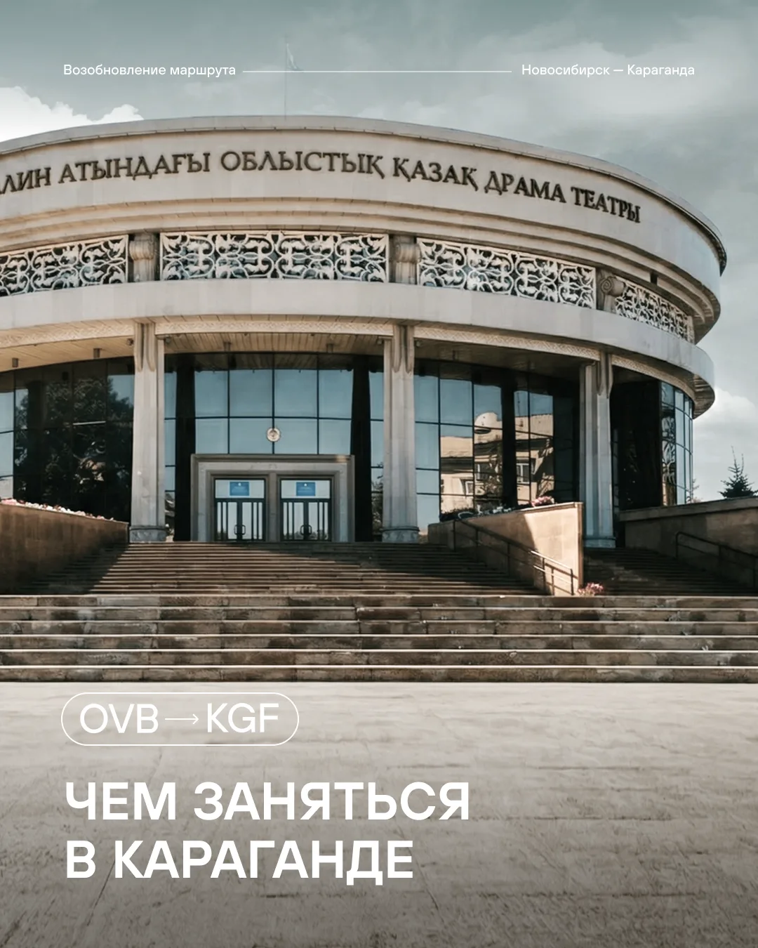 Расширяем программу полетов в Казахстан: с 3 апреля запустили прямые рейсы из Новосибирска в Караганду по пятницам. Время в пути всего 1 ч 50 минут.