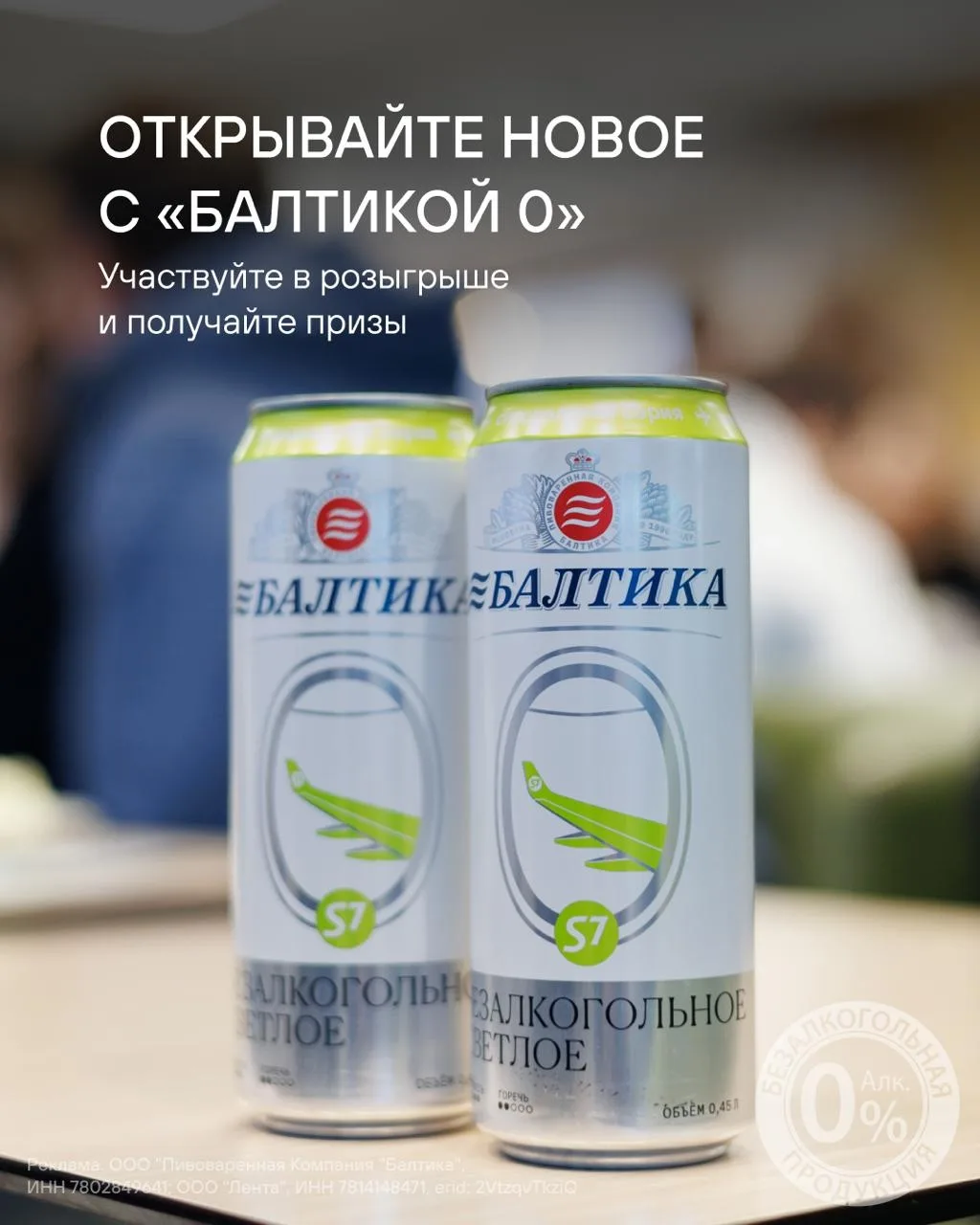 Ищите безалкогольный лагер «Балтика 0» в эксклюзивном дизайне на борту самолетов S7 и в магазинах «Лента».