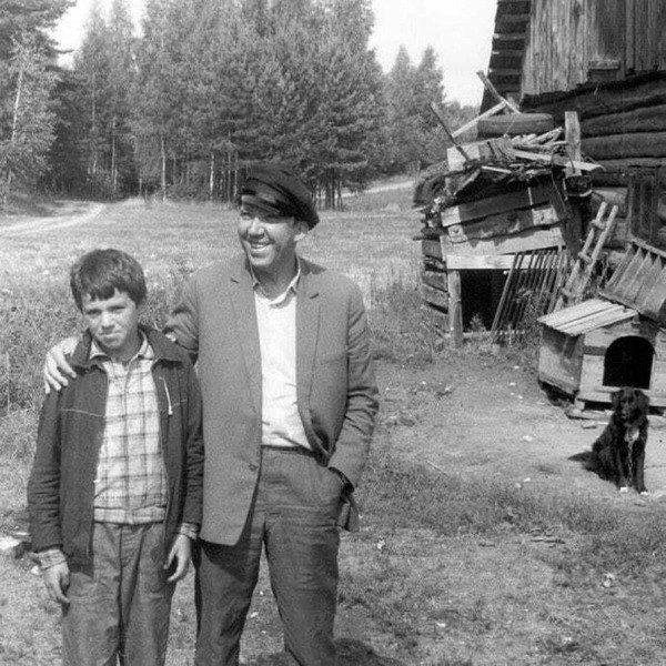 Юрий Никулин с сыном Максимом в деревне. 1960 год.