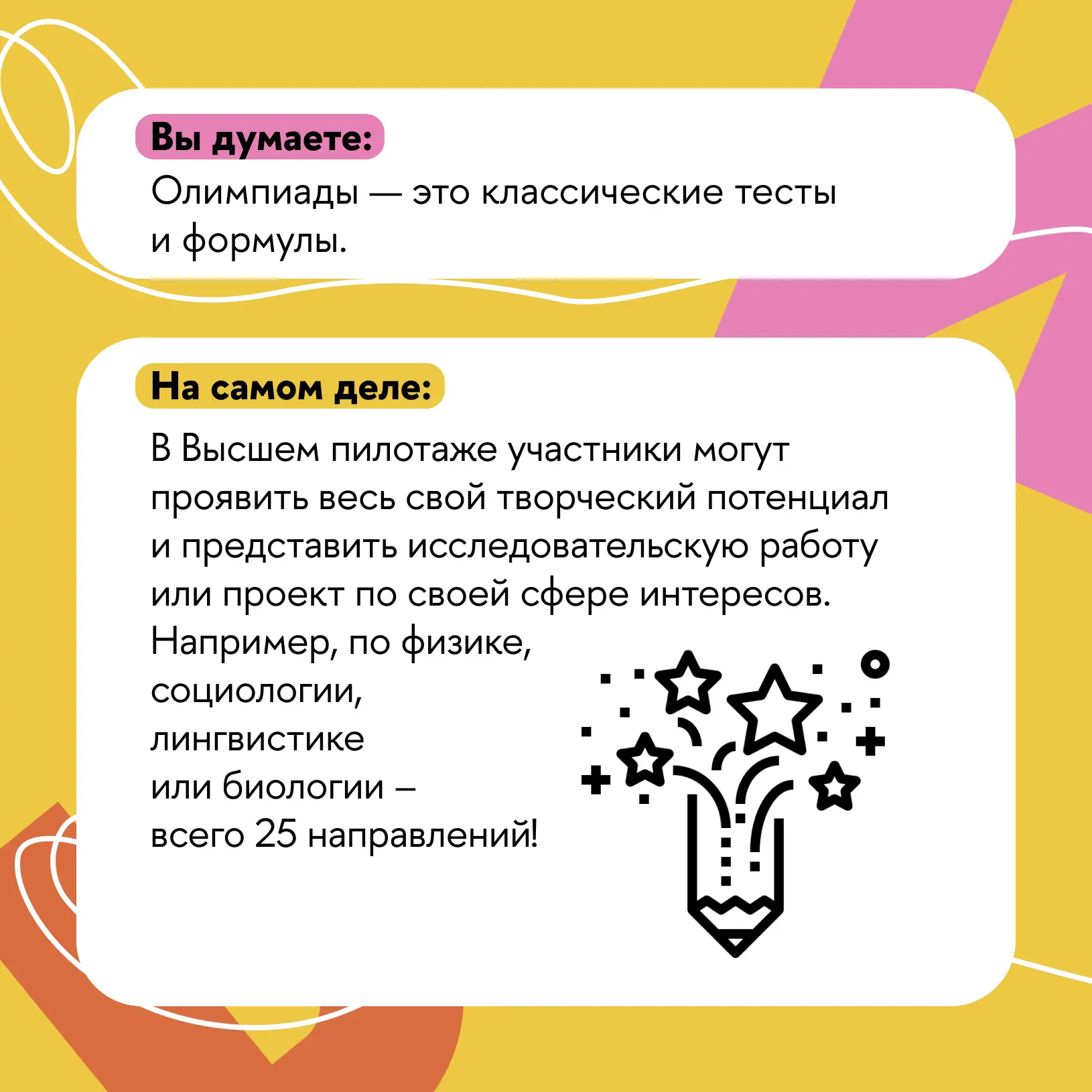 Мы развеим все сомнения, потому что участники «Высшего пилотажа» с помощью менторов и экспертов создают невероятные исследования на – важно! – интересующие их темы.