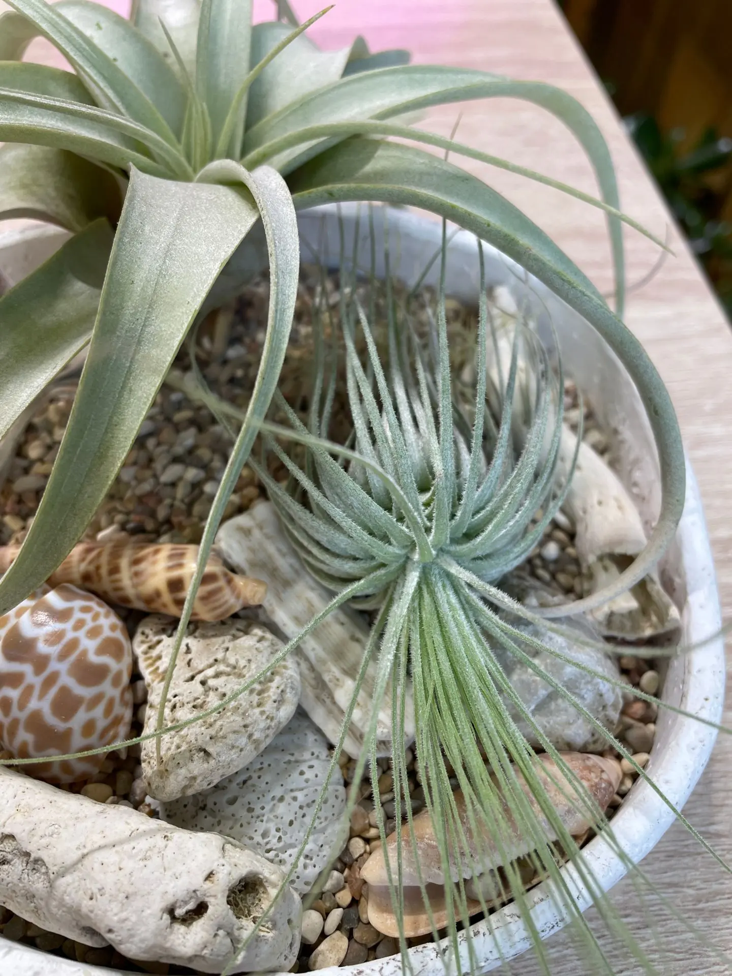 Внешний вид тилландсии определяется её средой обитания. Учёные разделяют эти растения на два типа: мезофиты, или «зелёные», любят влажные тропики, их листья мягкие, с менее выраженными трихомами. А вот ксерофиты, или «серебристые», приспособлены больше к засушливым условиям. Их листья покрыты густым слоем трихом, что придаёт им серебристый оттенок, именно такие я и прикупила себе.
