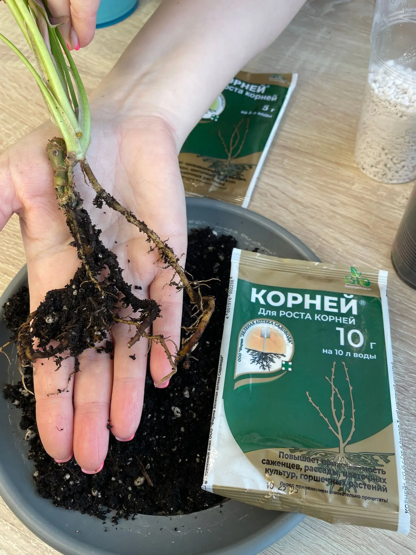 Подержите розетку с корнями в холодной воде 2–3 часа.