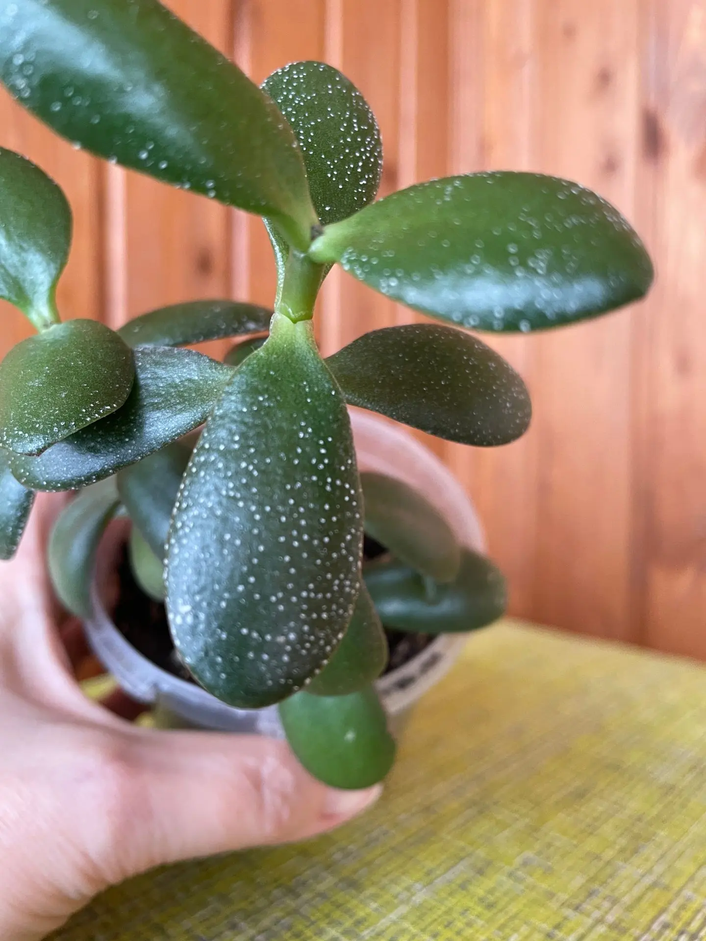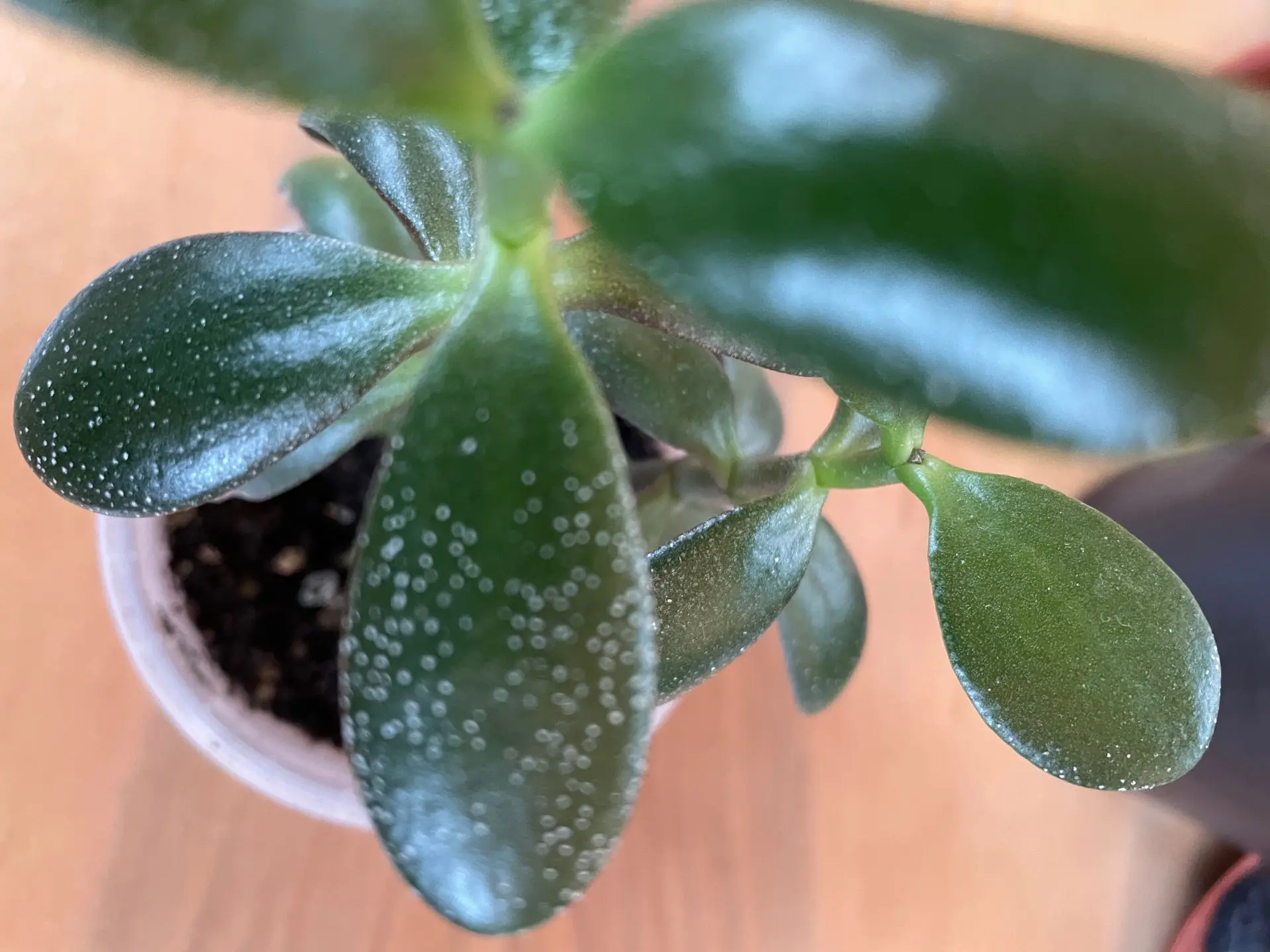 ЕСТЬ ВОПРОСИК Почему на листьях толстянки появляются белые точки? ОТВЕЧАЕМ Причины могут быть разными. Это не обязательно вредитель или болезнь. Возможно, растение сигнализирует о переливе или благодарит за лучшее освещение. А может, это просто сортовая особенность, о которой вы не знали