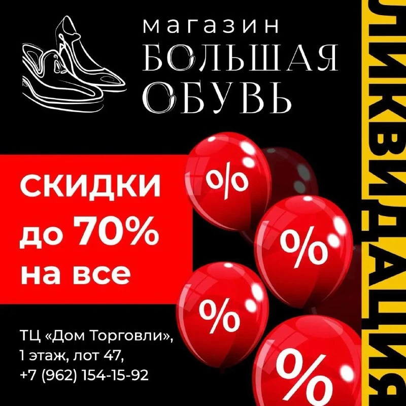 Большая распродажа в «Большой обуви» — скидки до 70% на весь ассортимент! 👠