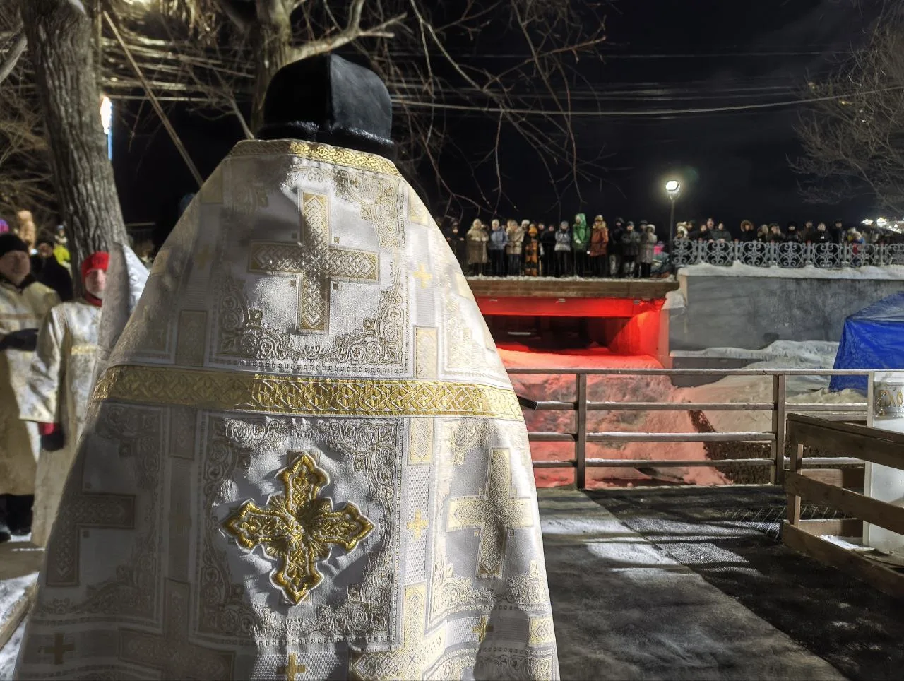 Купель расположилась в традиционном месте — на реке Рогатке, рядом с озером Верхнее.