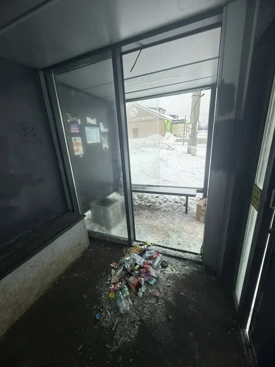 🤬Вандалы в Невельске разбили стекло на остановке и оставили горы мусора