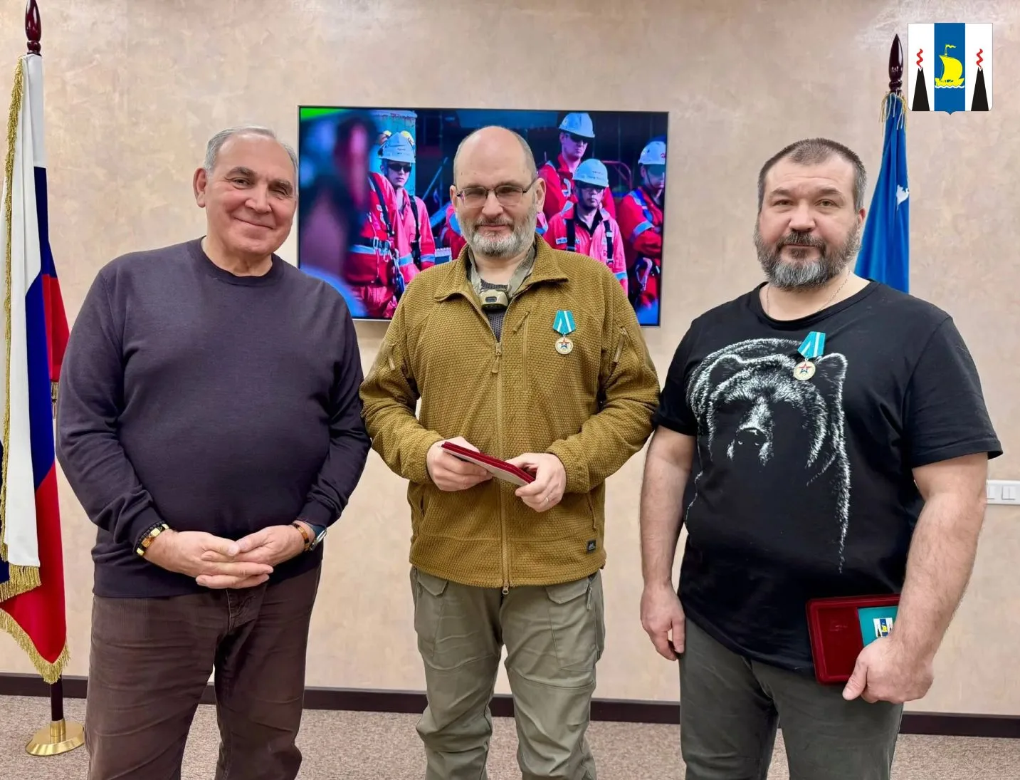 В представительстве Сахалинской области в Москве прошло награждение добровольцев, оказывающих помощь участникам СВО. По поручению губернатора Валерия Лимаренко медали «Сахалинская область — фронту» за поддержку бойцов и их семей вручили Юрию Евичу и Юрию Синеву.