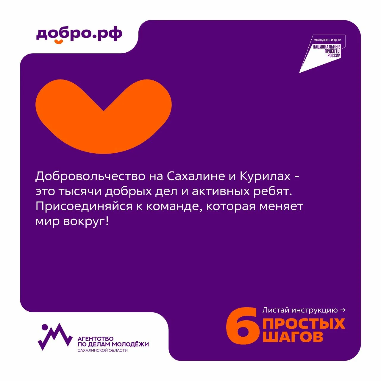 Добровольчество на Сахалине и Курилах — это тысячи возможностей стать частью чего-то большого и важного. Помогать там, где нужна поддержка, находить друзей, получать опыт и видеть результат своих дел.