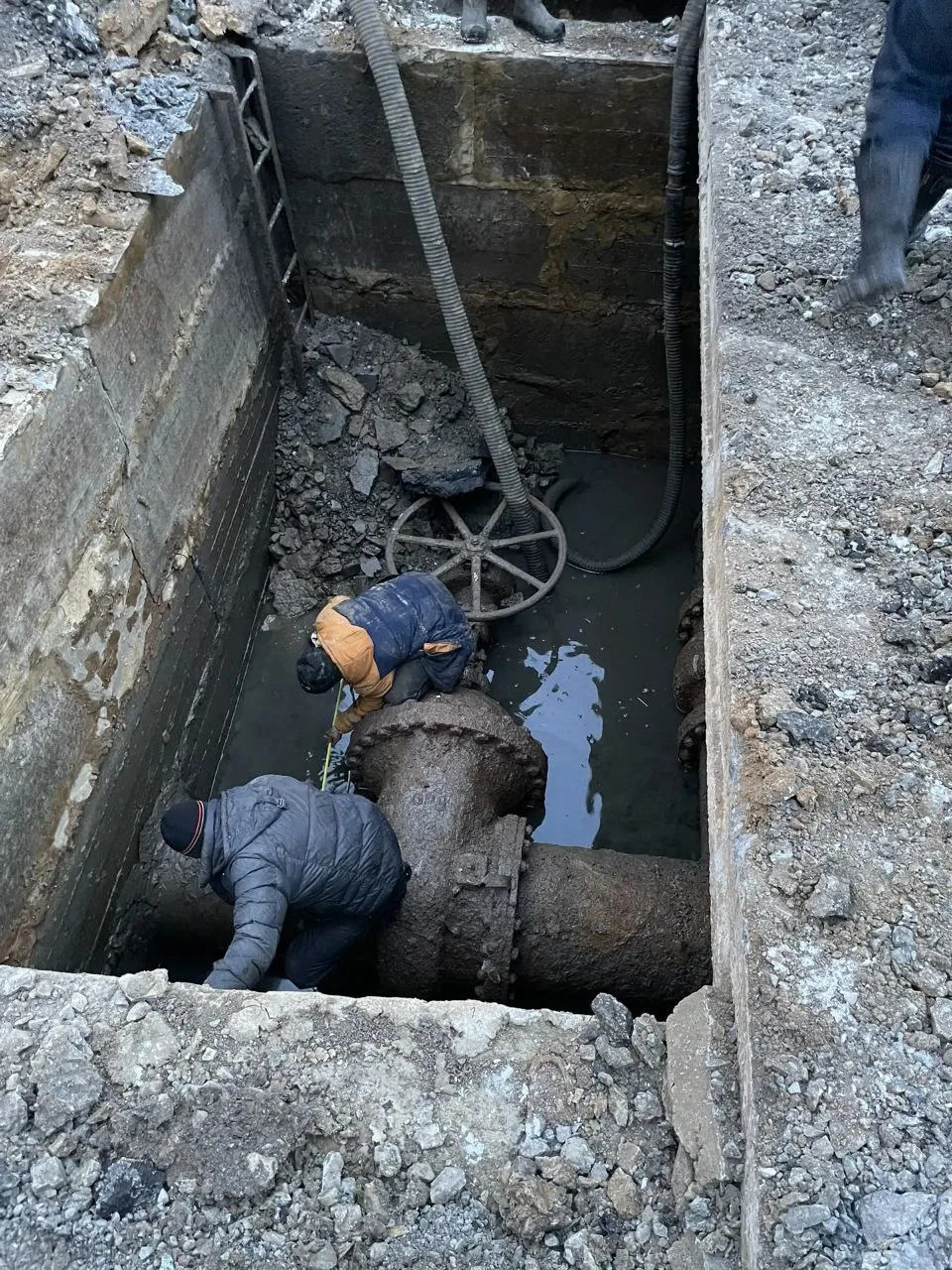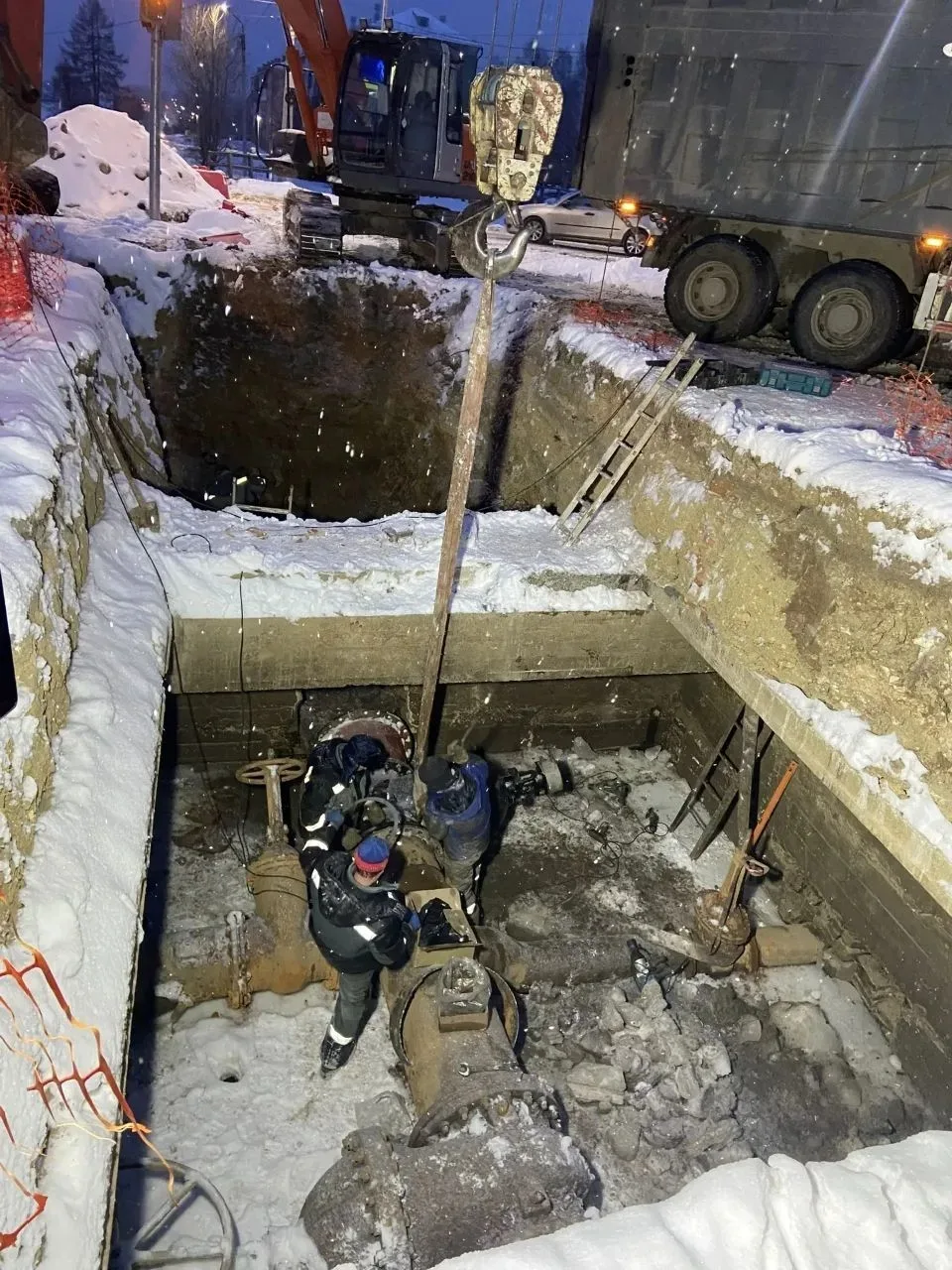 Продолжаются работы по переподключению аварийного участка магистральной сети холодного водоснабжения Ду700мм к новому смонтированному трубопроводу.