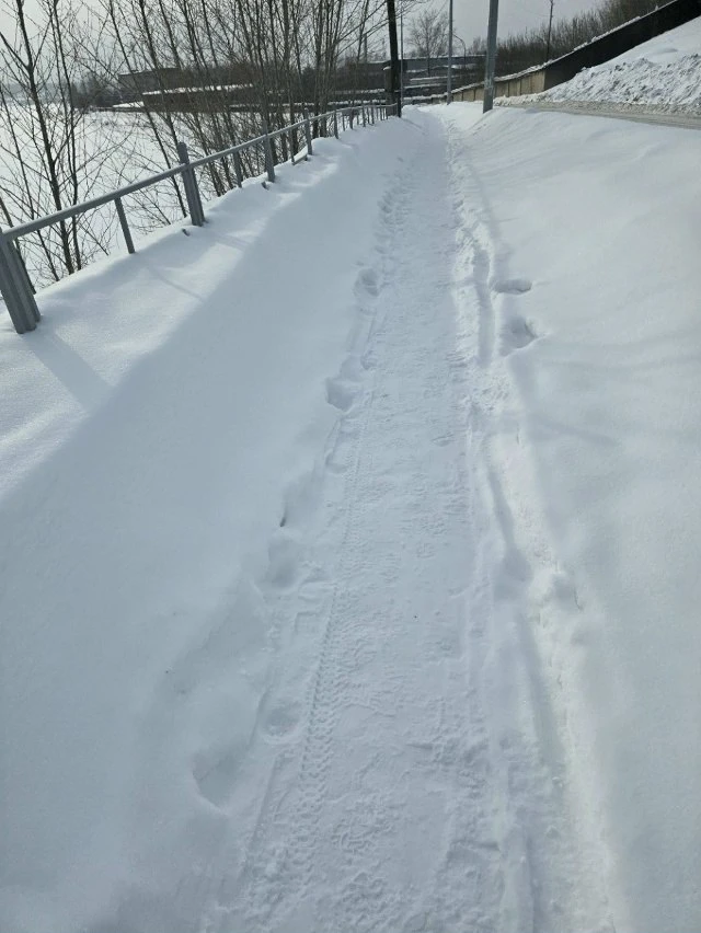 - Тротуар вдоль пруда завален снегом, сложно пройти с коляской.
