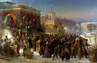 ✔Константин Маковский "Народное гулянье во время Масленицы на Адмиралтейской площади в Петербурге".