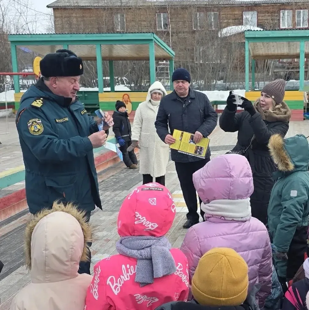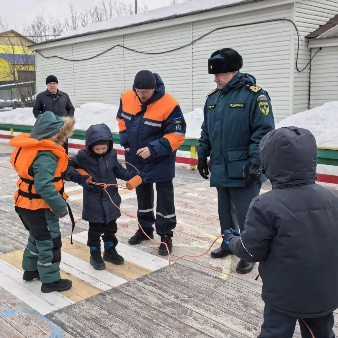 К воспитанникам детского сада «Крылышки» пришли в гости представители ГУ «Ямалспас» и департамента гражданской защиты и пожарной безопасности округа. Для ребят они провели занятие по безопасности: весной лёд на водоёмах становится тонким и может проломиться под ногами за секунду.