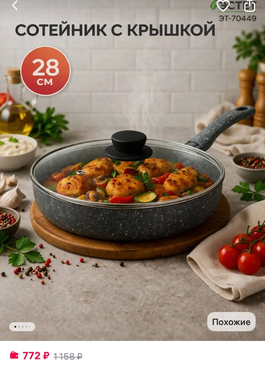 ЭСТЕТ ® Сотейник с крышкой антипригарный "Гранит" 28 см ЭТ-70449