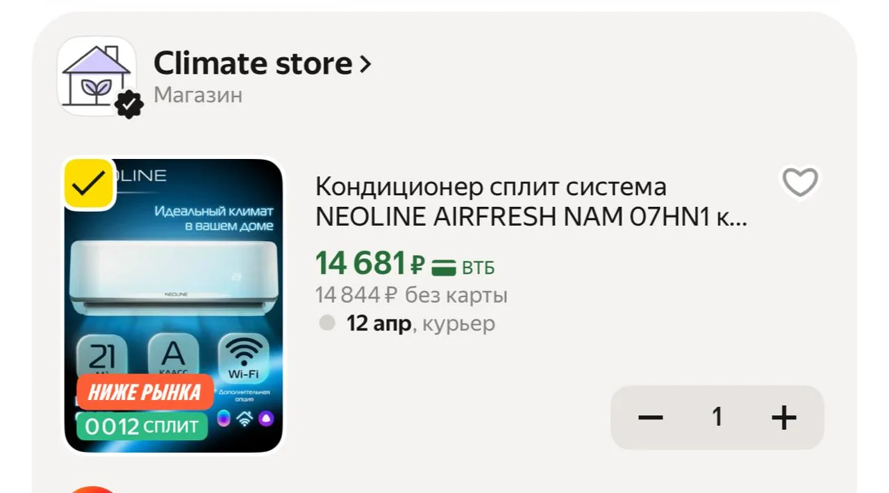▪️Кондиционер сплит система NEOLINE AIRFRESH NAM 07HN1 комплект, площадь охлаждения/обогрева до 21 м² 👈