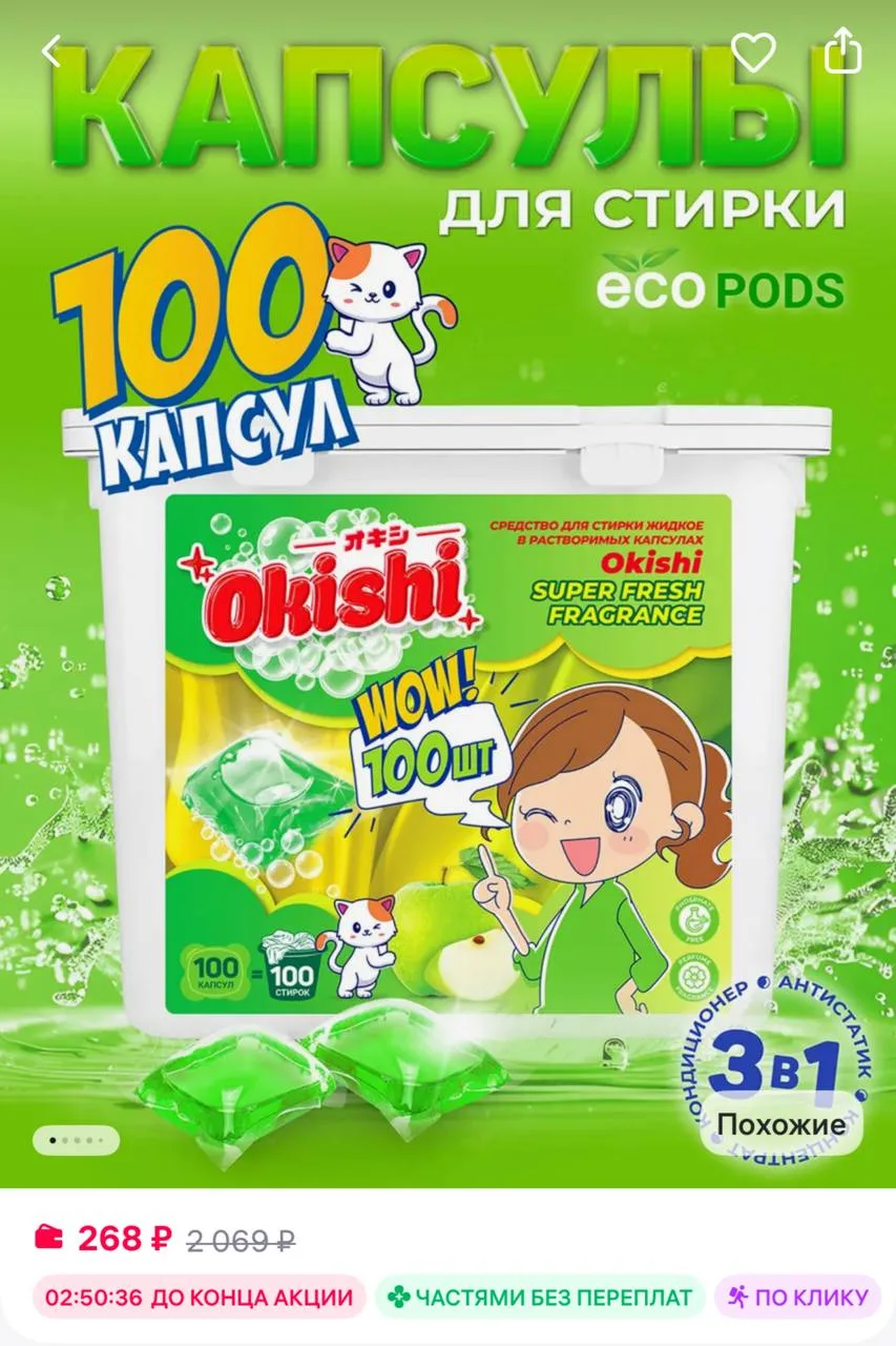Okishi Капсулы для стирки с кондиционером 100 шт