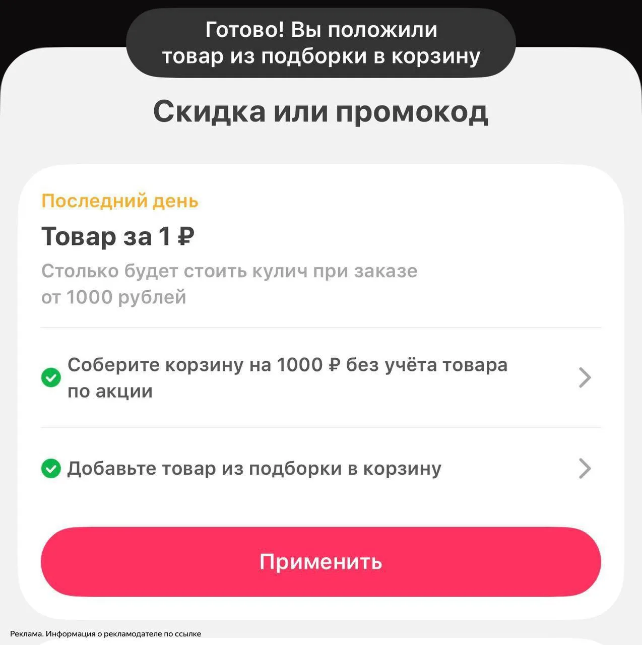 😱😍Кулич за 1₽ при покупке от 1000₽