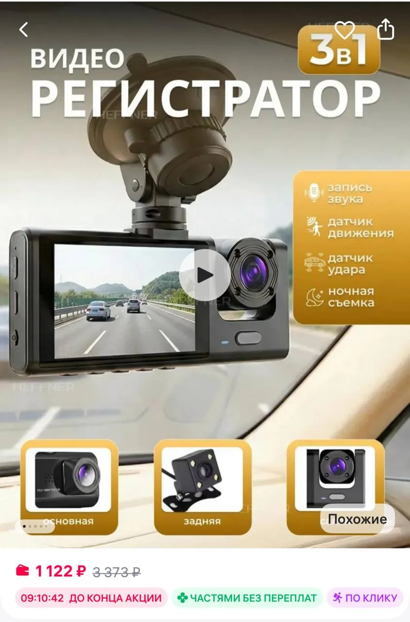 HEFFNER Видеорегистратор для автомобиля 3 в 1 с камерой заднего вида
