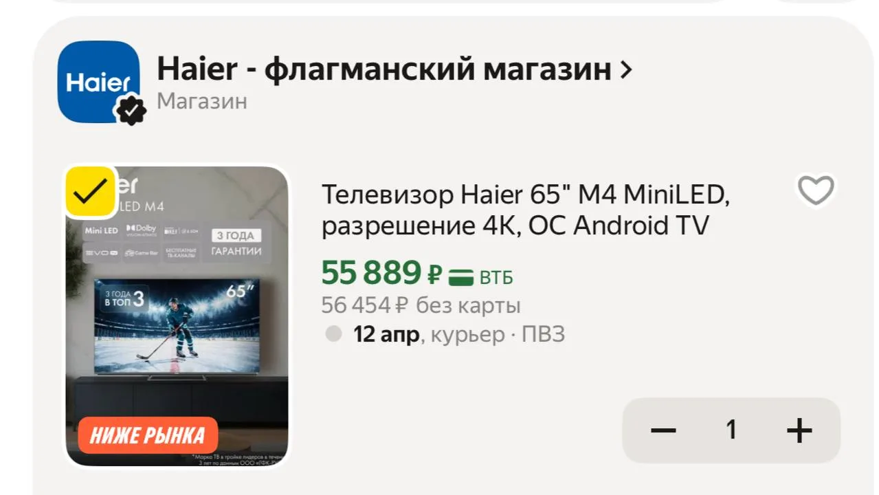 ▪️Телевизор Haier 65" M4 MiniLED, разрешение 4K, ОС Android TV 👈