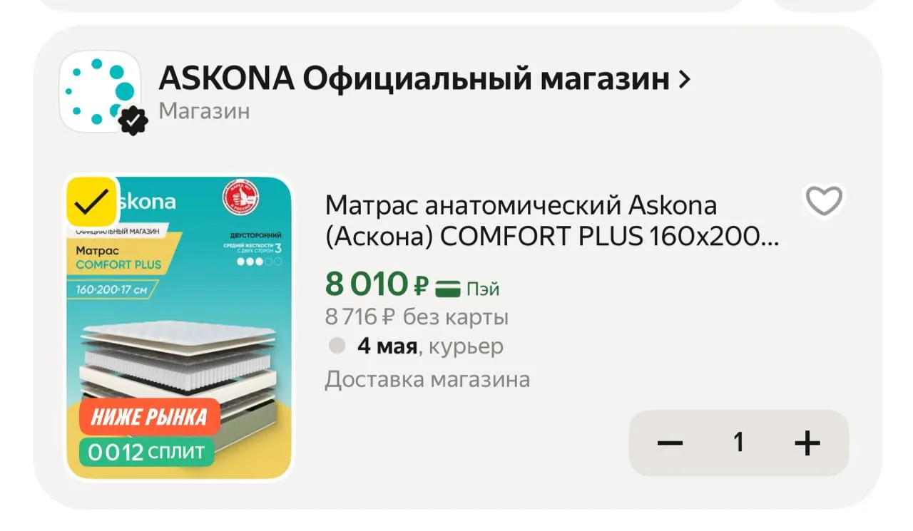▪️Матрас анатомический Askona (Аскона) COMFORT PLUS 160х200, высота 17см 👈