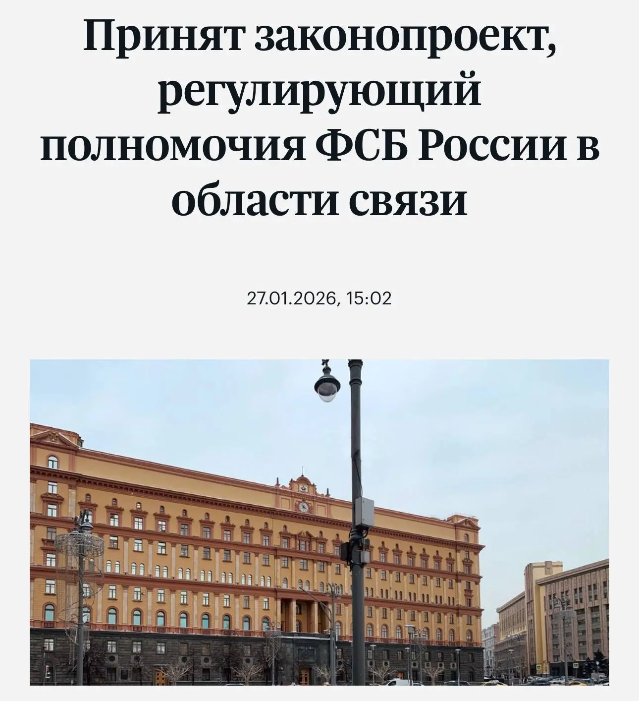 Он позволяет силовым структурам требовать временное отключение связи «в целях безопасности». При этом операторы не будут нести никакой ответственности перед клиентами — ни штрафов, ни нарушений договора.