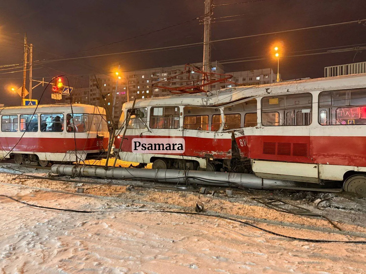 Причина — серьезное столкновение вагона со столбом в районе пересечения с ул. Георгия Димитрова. Подробности ЧП сейчас выясняются.