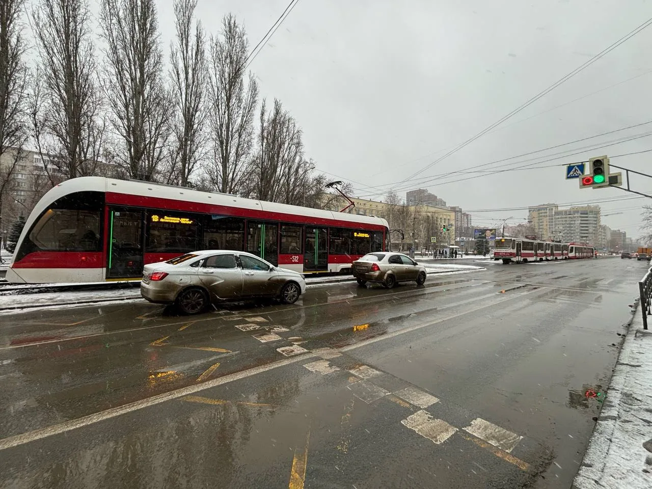 Но добавилось еще и ДТП, которое усугубило ситуацию. Инцидент произошел недалеко от пересечения улиц Ново-Садовой и Ново-Вокзальной. По словам очевидцев, машины столкнулись в среднем ряду. Из-за этого на подъезде к центру города образовался затор. В онлайн-картах этот участок загорелся «красным».