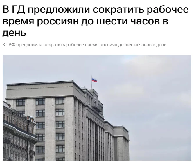 ❗️Рабочий день хотят сократить до шести часов — сегодня законопроект внесут в Госдуму