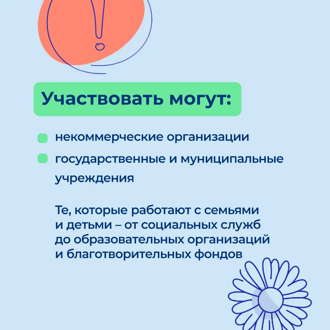 Участвовать в конкурсе могут некоммерческие организации, государственные и муниципальные учреждения: от социальных служб до образовательных организаций и благотворительных фондов.