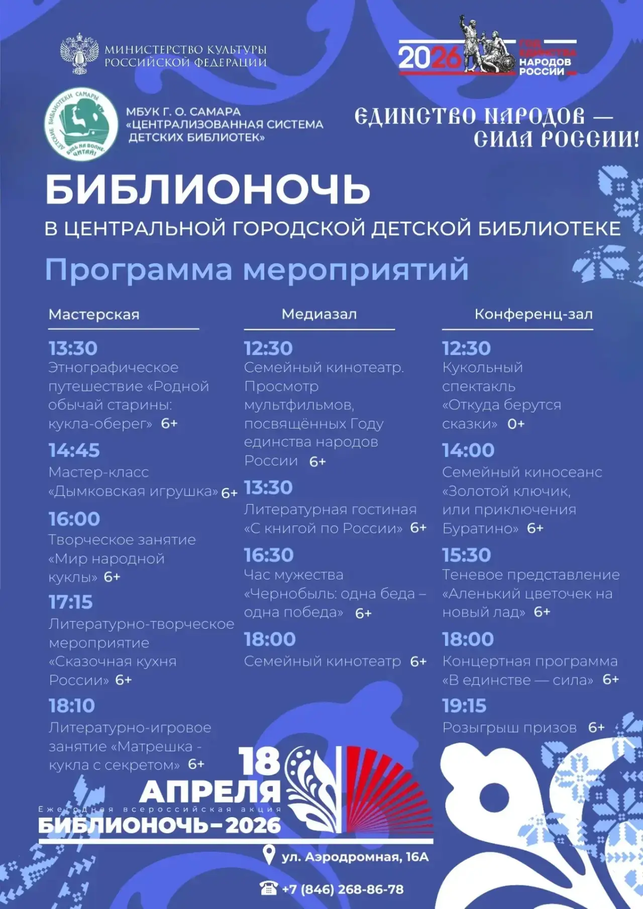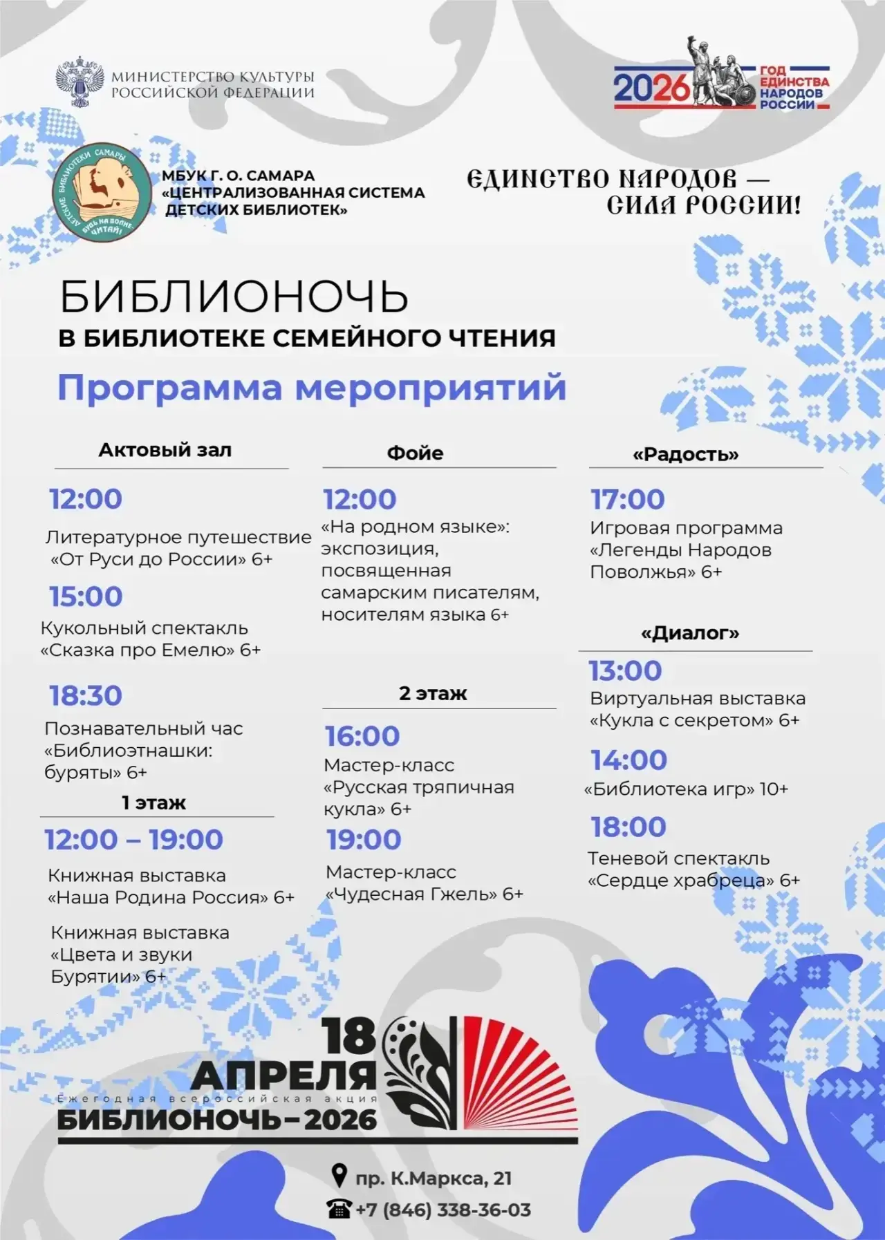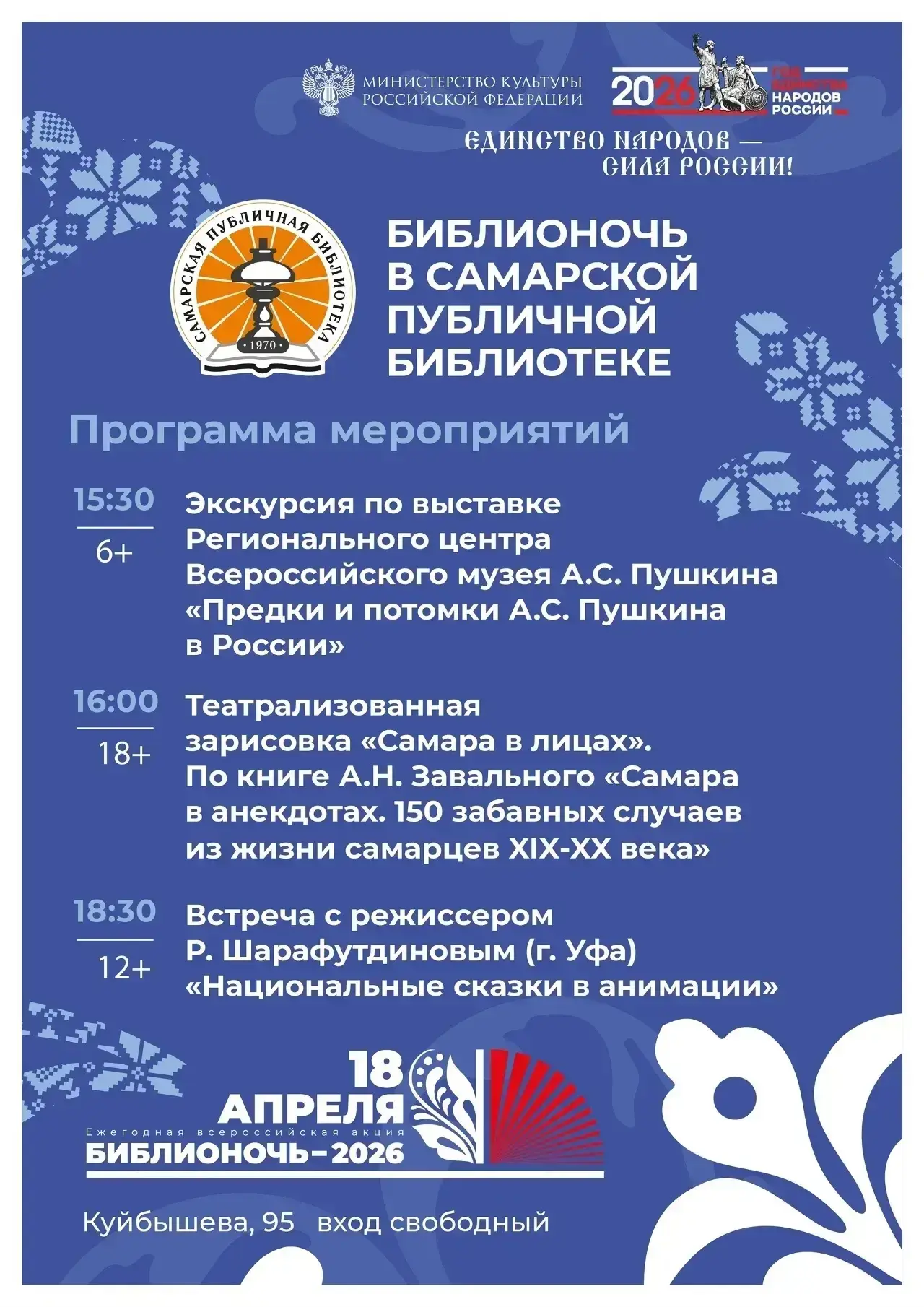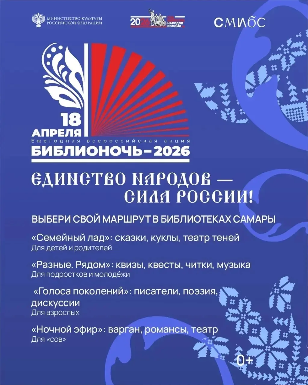 📌 Полная программа мероприятий Самарской муниципальной информационно-библиотечной системы размещена на сайте и доступна по ссылке https://smibs.ru/librarynight-2026.html.