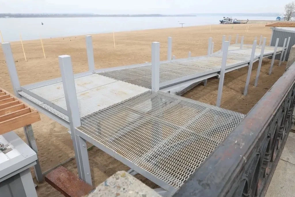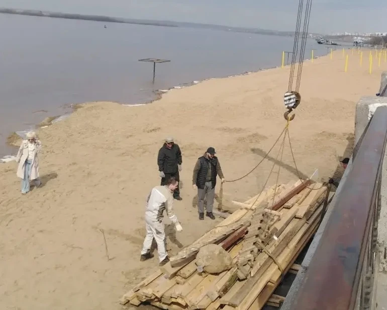 Волга прибывает: пляжное оборудование под контролем! 🏗